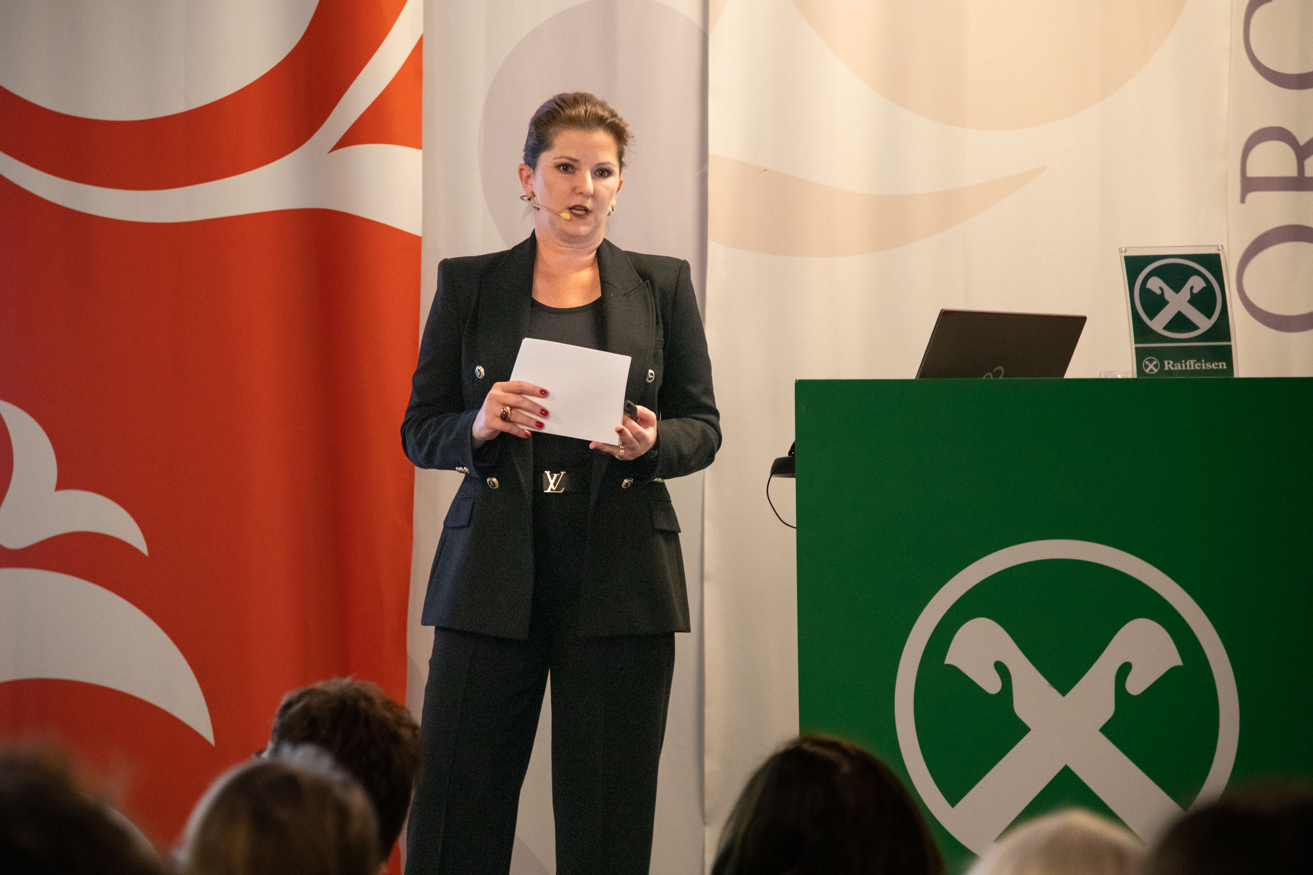 Paulina Schwarz, vicepresidente della Federazione Raiffeisen, ha condotto con grande abilità la serata e, in veste di presidente del gruppo di lavoro “Donne alla guida di società cooperative”, ha richiamato l’attenzione sull’importanza della presenza femminile negli organi direttivi all’interno delle cooperative Raiffeisen. Obiettivo principale di questo gruppo di lavoro è proprio quello di incrementarne la componente, ma anche di sviluppare ulteriormente lo scambio di esperienze tra le donne attive attraverso il lavoro di rete.