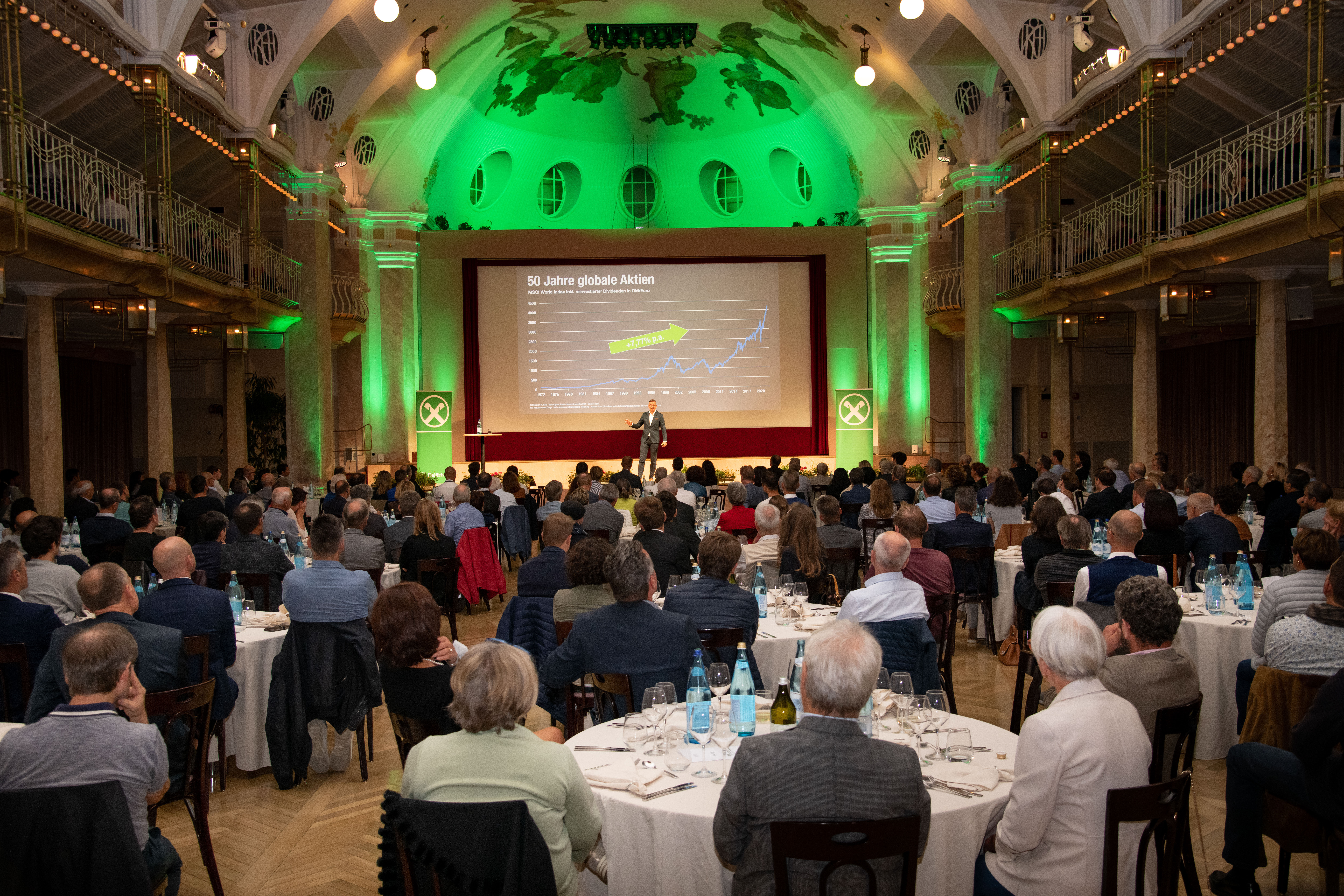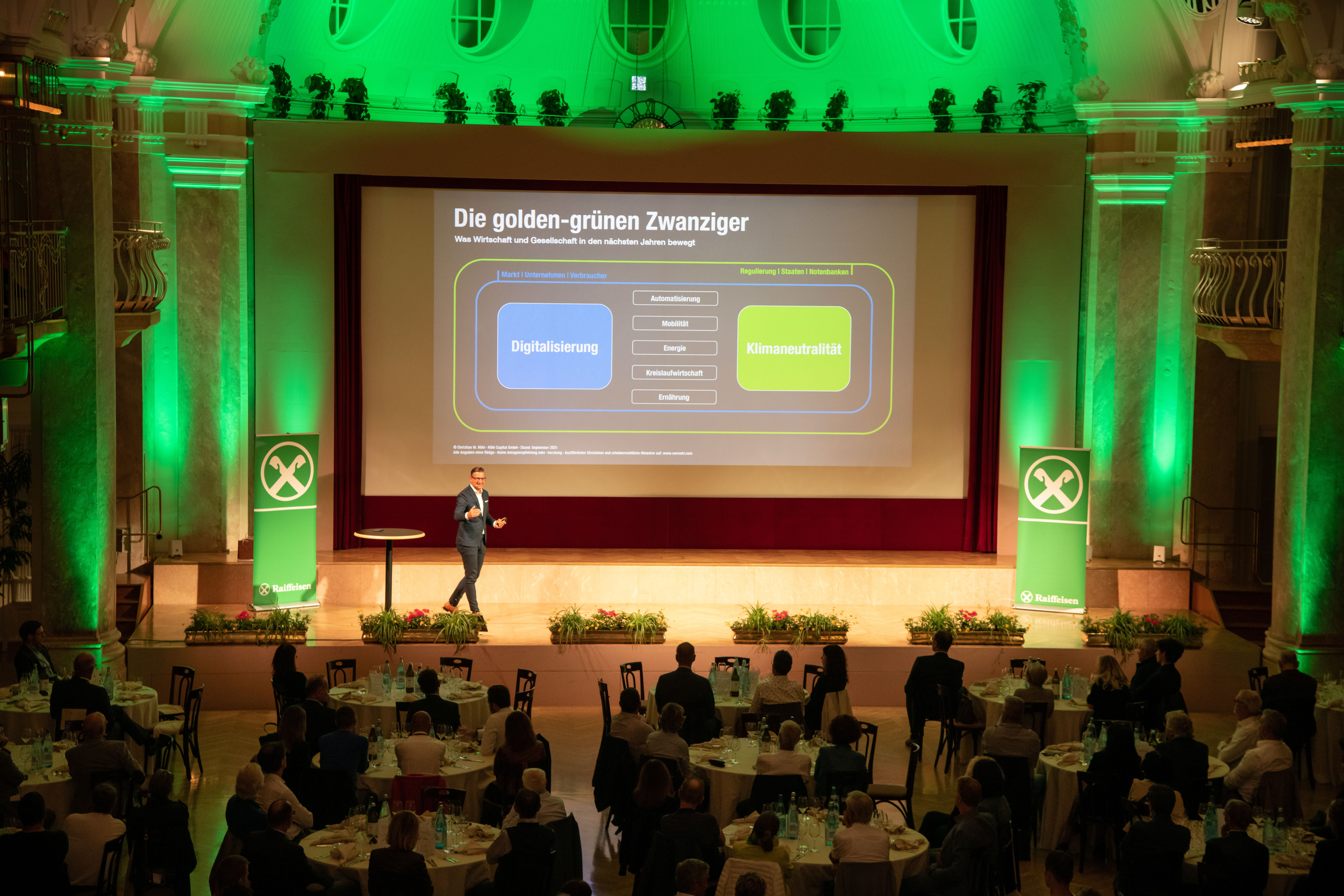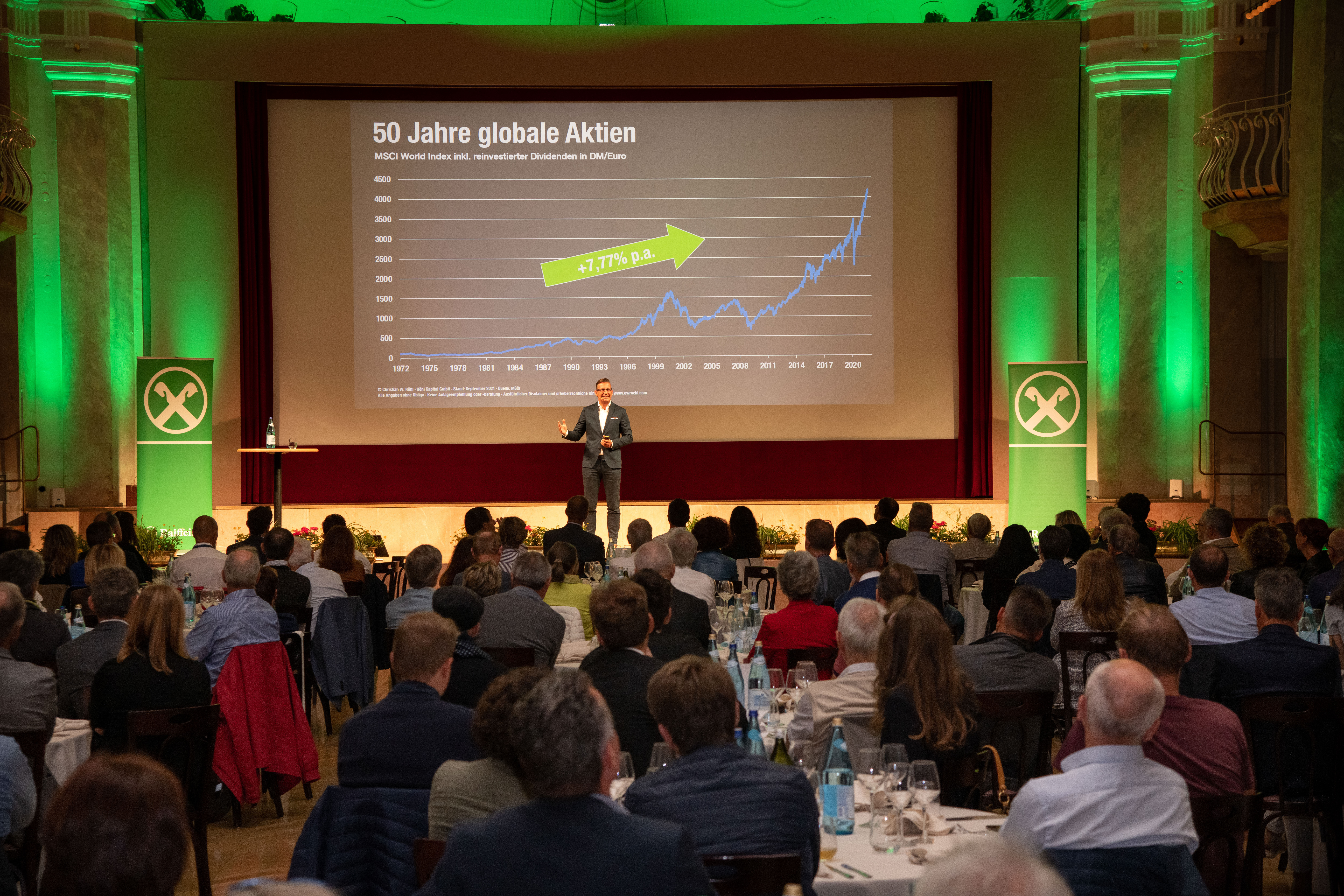 Christian W. Röhl, noto esperto di Borsa, e Armin Assinger, ex sciatore alpino a livello internazionale, sono stati i relatori del 20° Simposio degli investitori di Raiffeisen InvestmentClub, svoltosi il 22 settembre al Kurhaus di Merano.