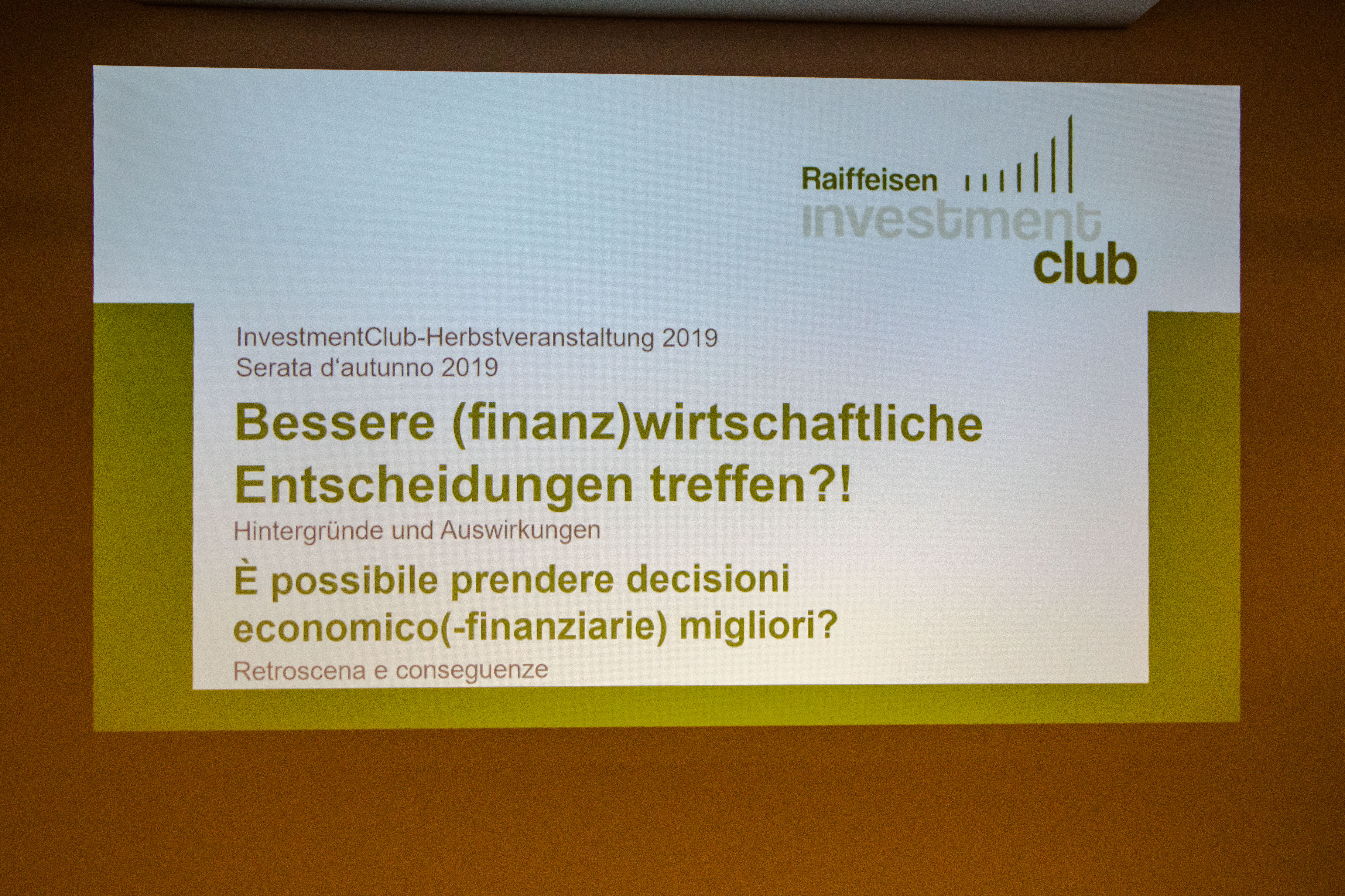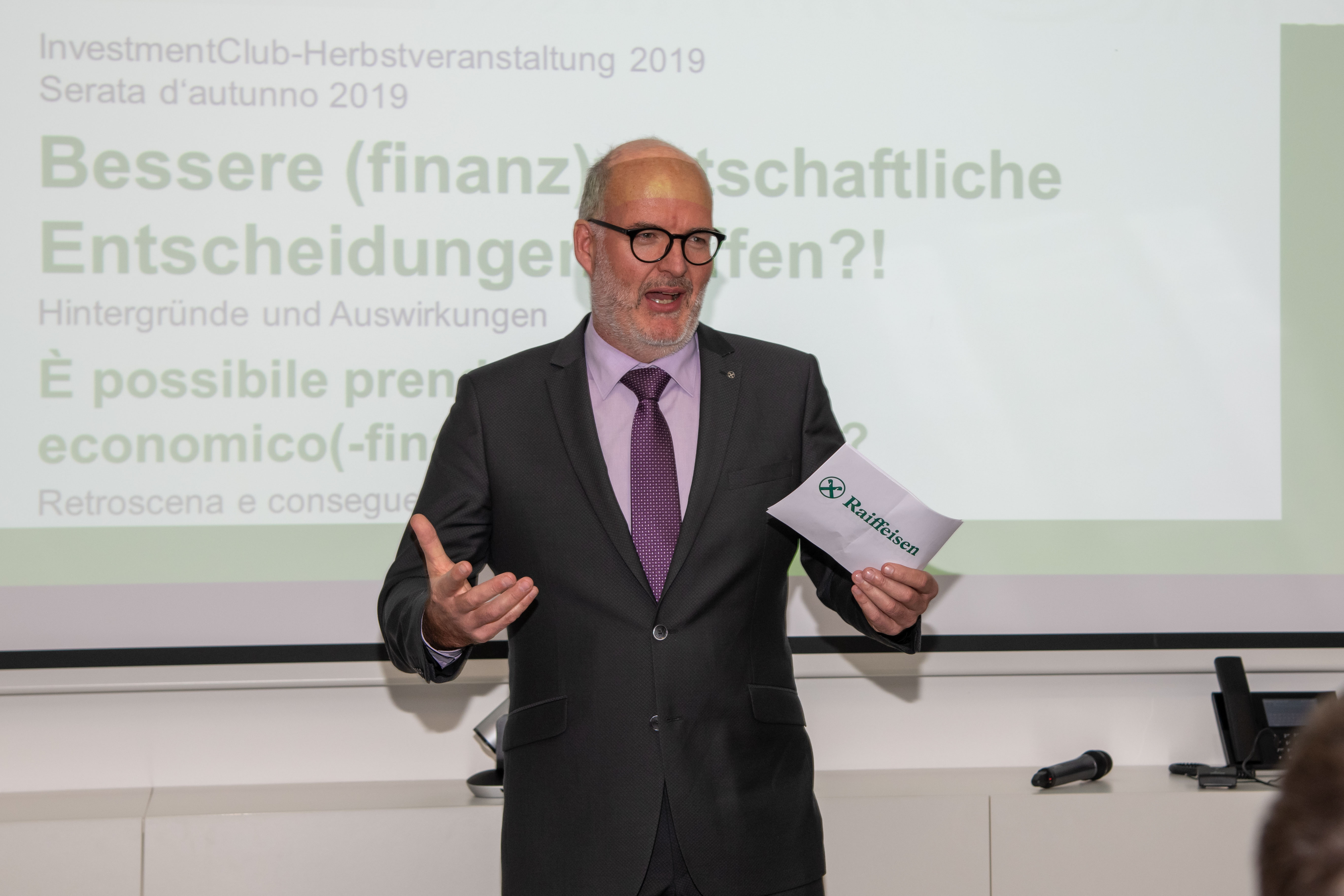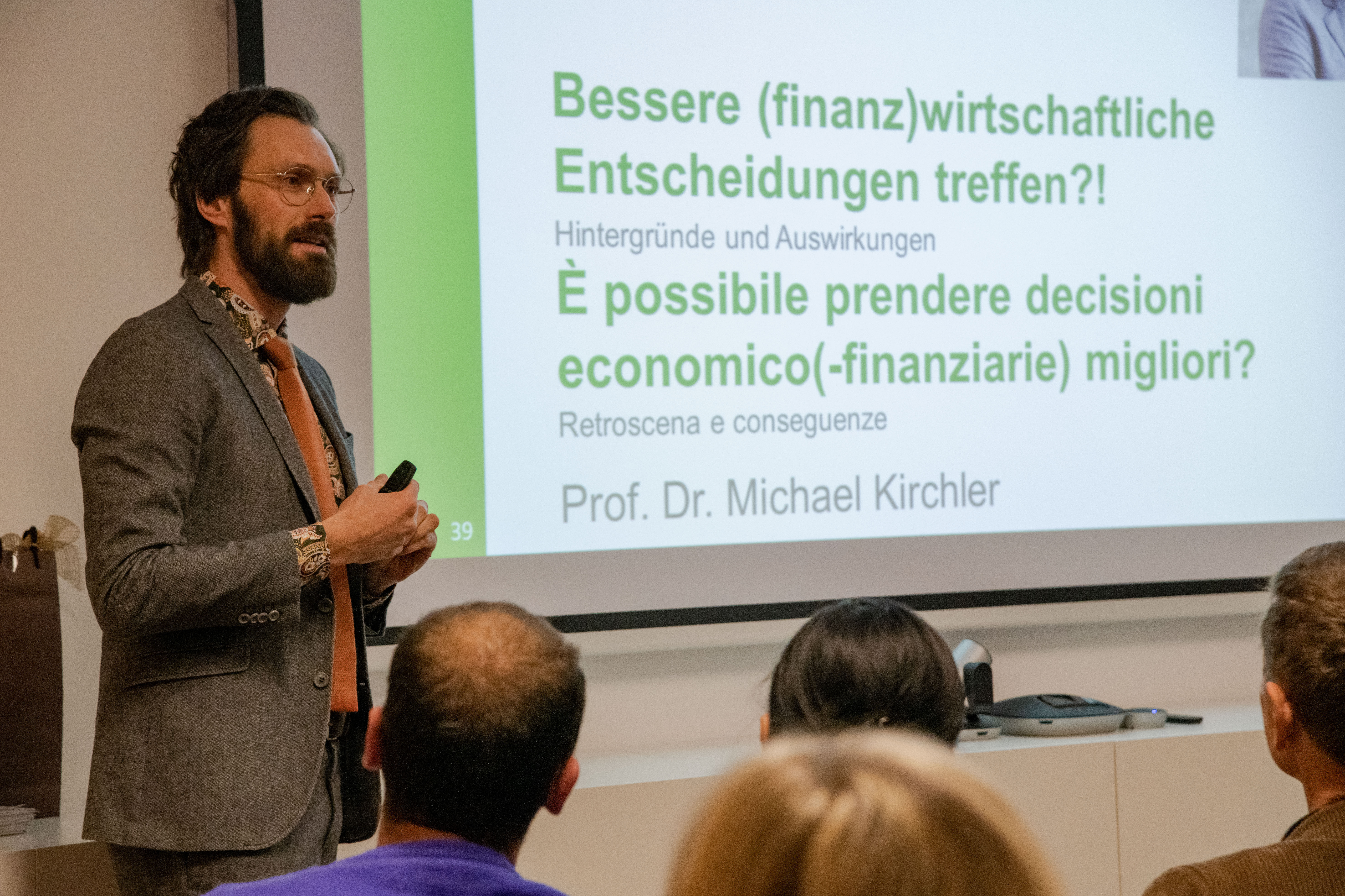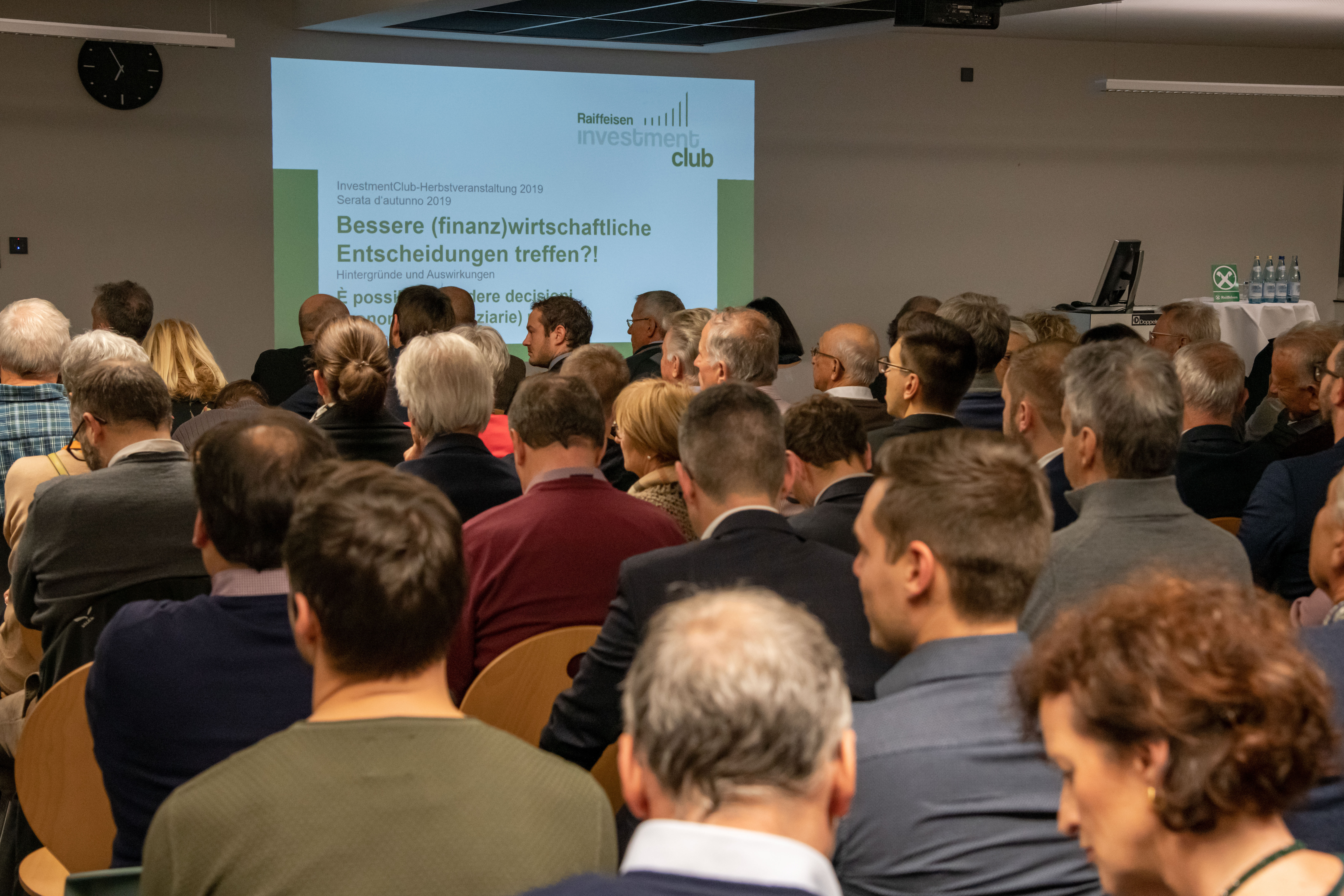 Il 20 e 21 novembre 2019, a Campo Tures (presso la sede di Wolf System Srl) e Lana (presso Doppelmayr Italia Srl), si è tenuta la consueta manifestazione autunnale di Raiffeisen InvestmentClub, durante la quale l’esperto Michael Kirchler ha rivelato alcuni accorgimenti per prendere decisioni economiche (e finanziarie) più valide.