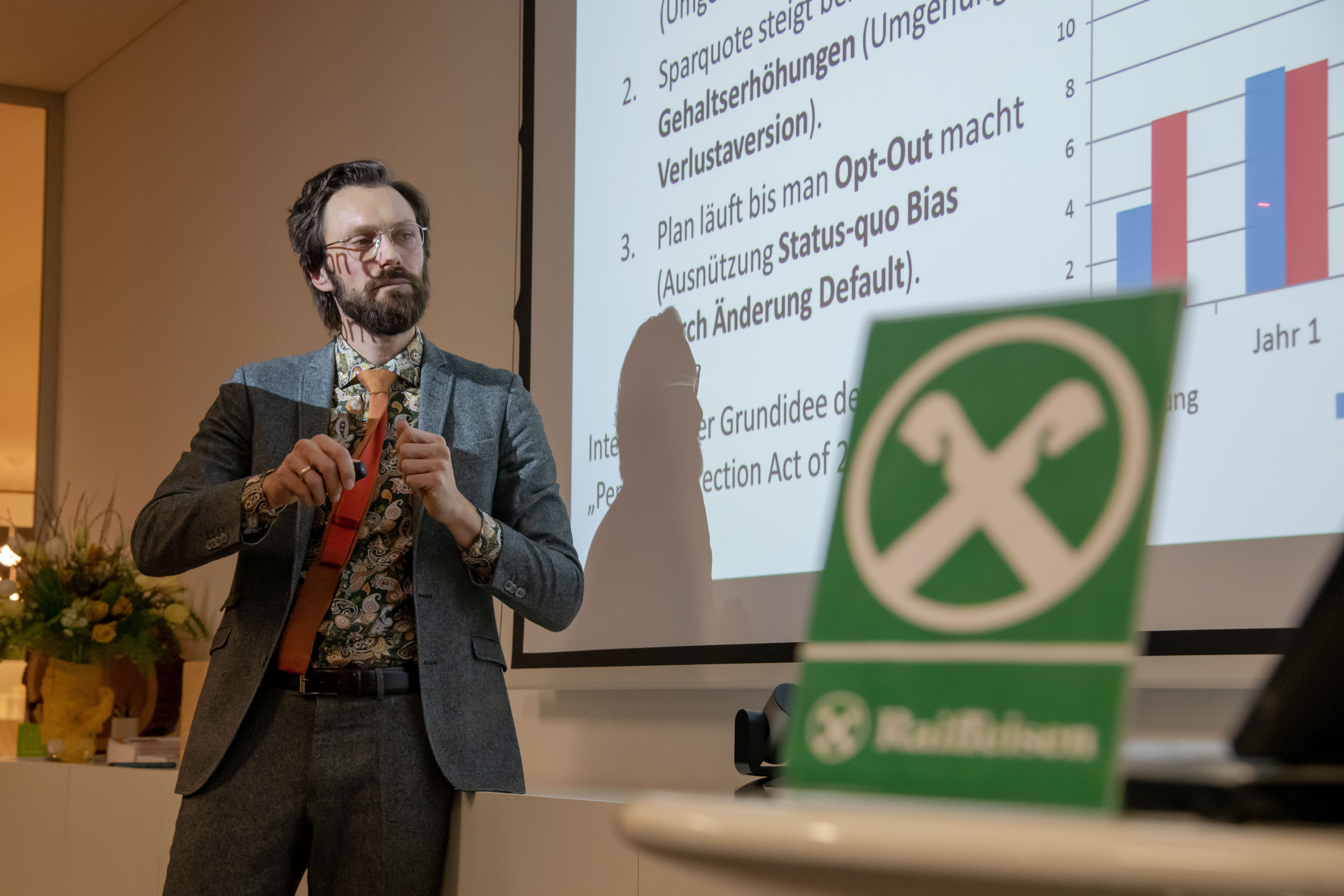 Michael Kirchler, professore di economia finanziaria all’Università di Innsbruck e relatore della manifestazione autunnale di Raiffeisen InvestmentClub, tenutosi quest’anno a Campo Tures e Lana, è un esperto riconosciuto in materia di economia comportamentale. Attualmente, in collaborazione con il suo team, sta studiando i meccanismi che consentono agli uomini di prendere decisioni economico-finanziarie migliori. “Ogni giorno compiamo scelte più o meno importanti”, ha dichiarato Kirchler, “che spaziano dai consumi quotidiani fino agli investimenti in previdenza, e non sempre sono le migliori”. Stando alle sue ricerche, ciò dipenderebbe tra l’altro dalla forte focalizzazione sul presente, insita nella natura umana. ”Poiché siamo portati ad attribuire un peso maggiore al momento attuale rispetto al futuro”, ha proseguito, “diamo più importanza a un cappotto nuovo rispetto alla previdenza per la vecchiaia.” Questo approccio non è una novità dei nostri tempi, anche se oggi le offerte online facilmente accessibili (“basta un clic”) ci spingono talvolta a compiere acquisti impulsivi e avventati. Per promuovere progetti di risparmio e previdenza, l’esperto finanziario consiglia di “raggirare” la nostra propensione al presente attraverso obiettivi ben definiti o piani di accumulo.