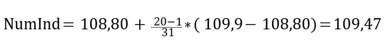 Volendo, ad esempio, calcolare il numero indice per il 20 maggio 2022 (Numero Indice), si dovrà utilizzare l’indice di inflazione del terzo mese precedente quello per il quale viene effettuato il calcolo, quindi di febbraio 2022 (108,80), nonché del secondo mese, ossia di marzo 2022 (109,90).